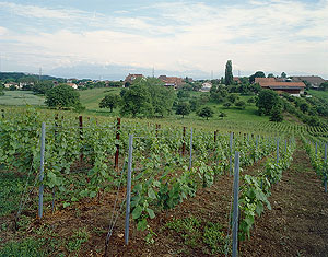 | Depuis 1988, date de la première récolte de Pinot noir (environ 1200 m2), nous avons augmenté notre production d'année en année. A ce jour, nous cultivons 4600 m2 et offrons une palette de quatre spécialités. |  |